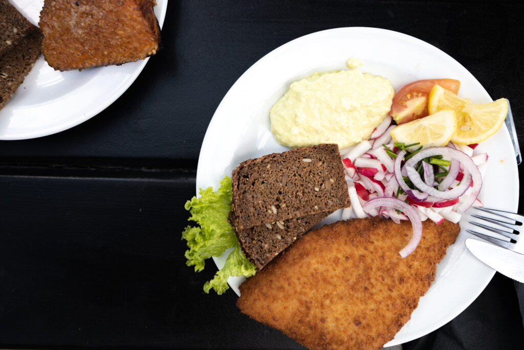 Bornholm is famous for its long tradition of building small smokehouses along the coast of the island and smoke newly caught fish. Therefore, when you visit Bornholm, you have to taste a lunch platter with herring or another smoked fish with a side of rye bread, dressing and a small salad. Bakkarøgeriet was established all the way back in 1938 and is still smoking fish in the traditional Bornholm way. From the outside, the restaurant doesn’t look like much, but as you make your way through the restaurant, you experience a big indoor seating area, a small live stage for local musicians, and a terrace with the most beautiful view of the sea and a tiny local harbor. We recommend you sit outside on the terrace, enjoy the sea view and try the traditional dish “Sol over Gudhjem”, which is smoked herring with egg yolk, freshly cut onions, and a base of rye bread.