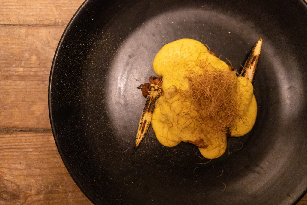 Restaurant Vilhelm is part of Grønbechs Hotel in Allinge. The popular restaurant is visited by both hotel guests of Grønbechs Hotel, locals, and tourists looking for a great dinner. The restaurant has a really nice indoor seating area with a minimalistic Scandinavian touch, and the restaurant’s yard is really noteworthy. The yard is super cute and cozy with long tables, cushions, and differently colored light bulbs hanging from above. The menu at the restaurant changes with the season and always includes local ingredients from Bornholm. The food is so tasty and there are both traditional dishes with a twist and completely new combinations of flavor and texture. We tried a dish with mushroom stuffed pasta topped with artichokes, garlic, and a sauce made on sage, parmesan, and butter that tasted so amazing, that we are still dreaming about it daily.