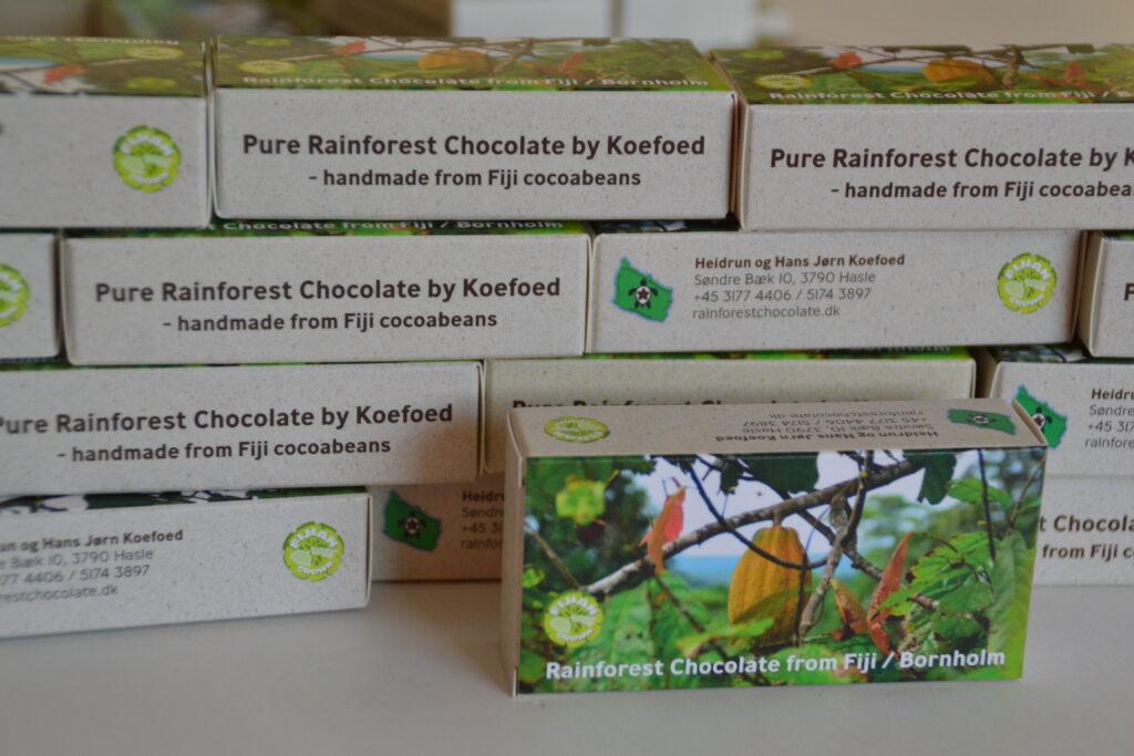 In the small town Allinge you are able to visit a chocolate delicatessen shop that sells ethical, social, and environmentally sustainable chocolate. The cacao beans come from a farm on Fiji owned by two Danish friends of the founders of Rainforest Chocolate, who planted a cacao plantation in the rain forest on their land. It is only allowed for adults to work on the cacao plantation, so the kids can attend their school education. The farm is also very concerned about the climate and local environment. Therefore, the farm is self-sufficient with green energy and water from a local water source, and the cacao plantation is kept without any chemicals. Most of the chocolate is also organic, Fairtrade, vegan and gluten-free, and the chocolate is purely made of cacao beans and organic sugar.