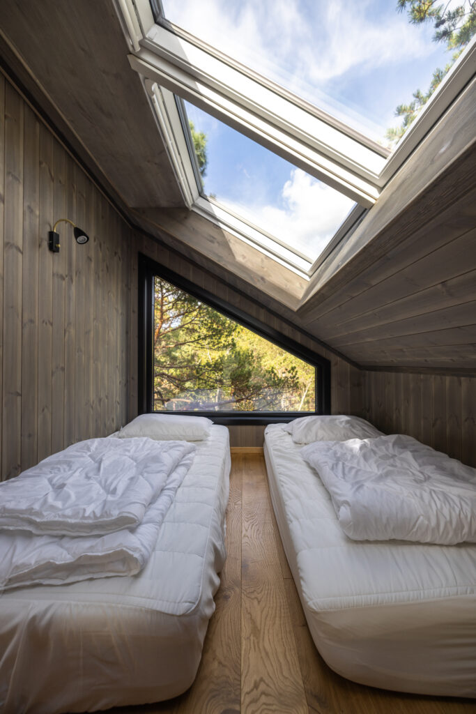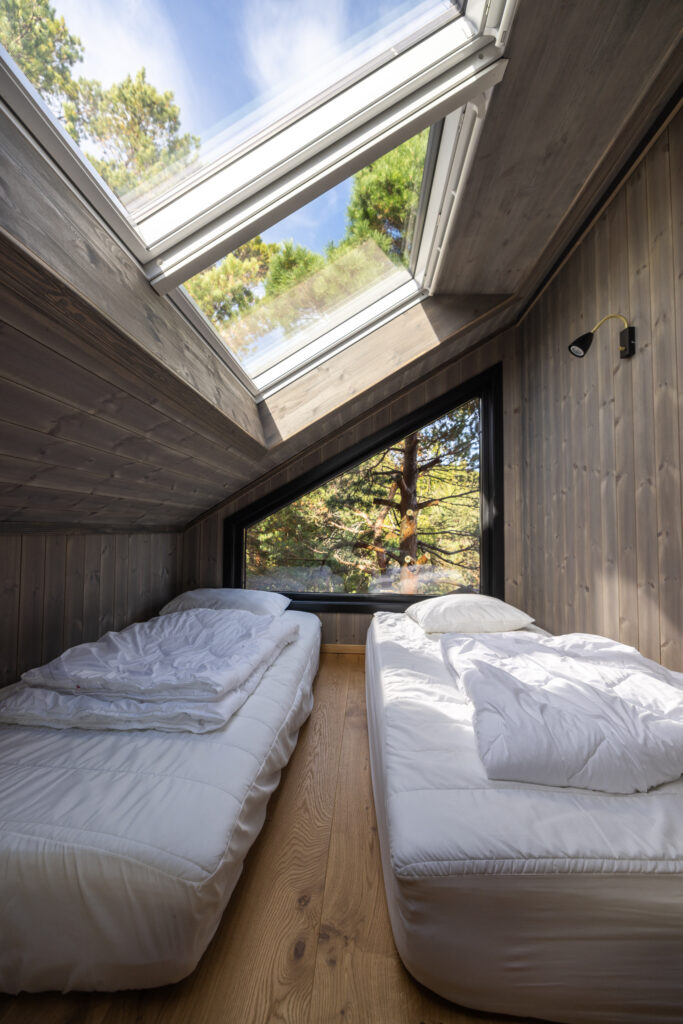 All bedrooms have a great view of the forest and just before you close your eyes, you can have a look at the magical night sky and look at the stars.
