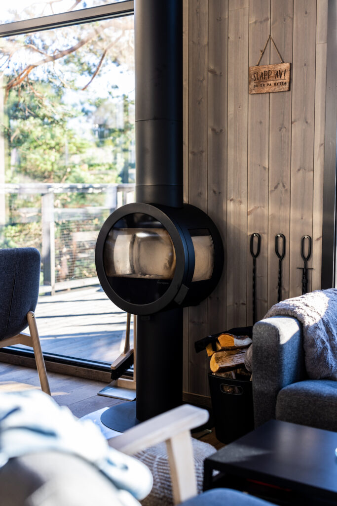 The sauna is heated by wood, which gives a great authentic experience. The sauna is as new as the cabin and of course, you have a beautiful panoramic view of the lake while heating up in the sauna. Don’t forget the nordic Viking tradition of jumping into the water after the sauna, no matter which time of the year it is.