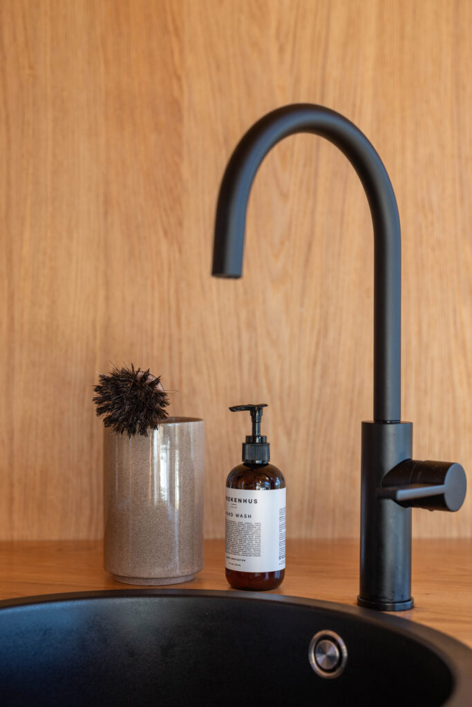 Even though the cabins are located in the middle of the forest, Henrik and Lene have managed to get electricity and water into the cabins. This means that you can easily make food in the kitchen, take a hot shower or turn on the light to read your book at night.